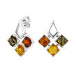 Kolczyki srebrne 925 Ag z bursztynem naturalnym kolor koniak, cytryna, zielony