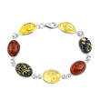 Bransoleta srebrna 925 Ag z bursztynem naturalnym kolor koniak, cytryna, zielony