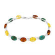 Bransoleta srebrna 925 Ag z bursztynem naturalnym koloru koniak, cytryna z turkusem