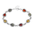 Bransoleta srebrna 925 Ag z bursztynem naturalnym kolor koniak, zielony, cytryna