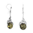 Kolczyki srebrne 925 Ag z bursztynem naturalnym kolor zielony