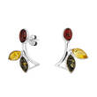 Kolczyki srebrne 925 Ag z bursztynem naturalnym kolor koniak, cytryna, zielony