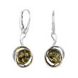 Kolczyki srebrne 925 Ag z bursztynem naturalnym kolor zielony
