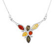 Naszyjnik srebrny 925 Ag z naturalnego bursztynu kolor koniak, cytryna, zielony
