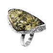 Pierścionek srebrny 925Ag oksydowany z bursztynek kolor zielony.