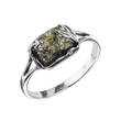 Pierścionek srebrny 925Ag oksydowany z bursztynek kolor zielony