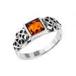 Pierścionek srebrny 925Ag oksydowany z bursztynek kolor koniak
