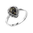 Pierścionek srebrny 925Ag oksydowany z bursztynek kolor zielony