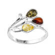 Pierścionek srebrny 925Ag oksydowany z bursztynem kolor koniak zielony, cytryna