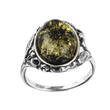 Pierścionek srebrny 925Ag oksydowany z bursztynem kolor zielony