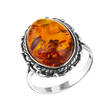Pierścionek srebrny 925Ag oksydowany z bursztynem kolor koniak
