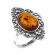 Pierścionek srebrny 925Ag oksydowany z bursztynem kolor koniak