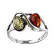 Pierścionek srebrny 925Ag oksydowany z bursztynem kolor koniak, zielony