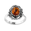 Pierścionek srebrny 925Ag oksydowany z bursztynek kolor koniak