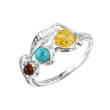 PIERŚCIONEK SREBRO Z BURSZTYNEM I TURKUSEM