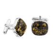 SPINKI DO MANKIETÓW SREBRNE Z BURSZTYNEM